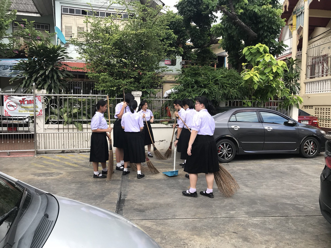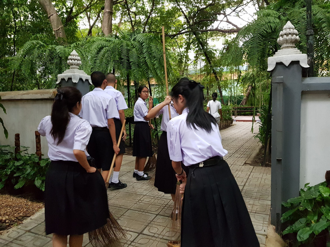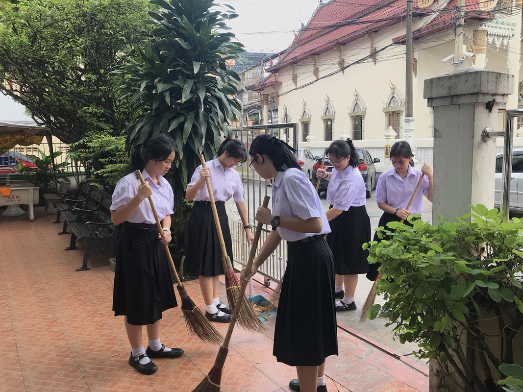 ทำความสะอาดบริเวณวัดปทุมวนารามราชวรวิหารและวัดชัยมงคล